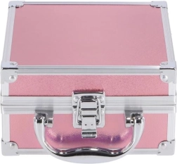 Елегантният розов козметичен куфар в компактна форма предлага прегледна организация и пълно оборудване за грим на очи, лице и устни. Алуминиевата конструкция с метално закопчаване е издръжлива и едновременно лека, което я прави идеална за чанта или пътуване.