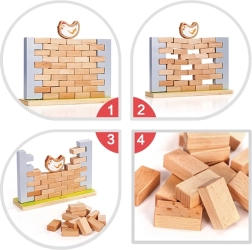 Изтеглянето на тухли без срутване на стената тренира координацията око–ръка, търпението и стратегическото мислене на децата.