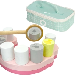 Комплектът на малкия зъболекар Classic World дава на децата безопасно пространство да изследват света на стоматологията. Благодарение на реалистичните дървени инструменти и модела на венците децата научават как протича прегледът, защо е важна грижата за зъбите и какво се случва, когато хигиената се пренебрегва. Играта естествено укрепва комуникативните умения и увереността.