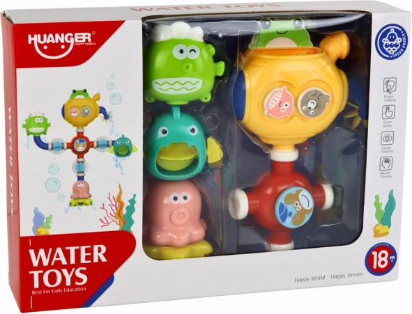 Направете къпането по-забавно за децата с интерактивна играчка за вана – робот с вендузи. Налейте вода в главата на робота и наблюдавайте как перките се завъртат, стартират се фонтанчета и потокът се променя благодарение на трите контролни вентила. Играчката развива фината моторика, логическото мислене и подпомага сетивното възприятие. Лесен монтаж върху плочки или вана благодарение на силните вендузи.