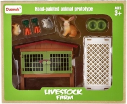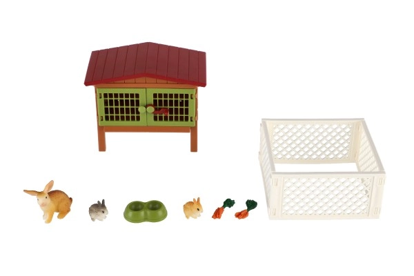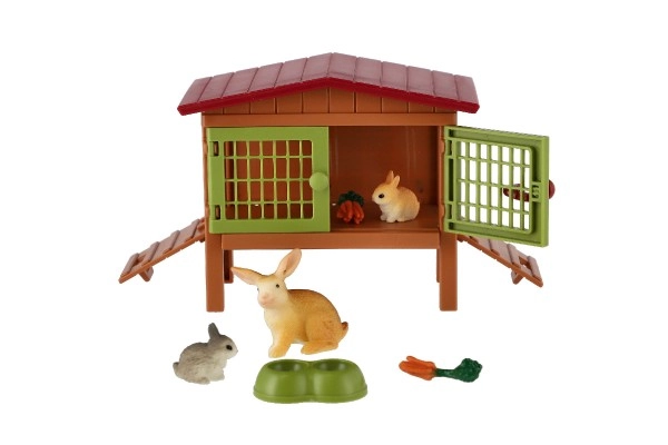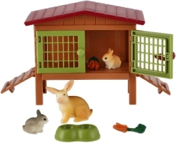 Комплектът включва зайци, хранилка и ограда, които осигуряват реалистични игрови преживявания.