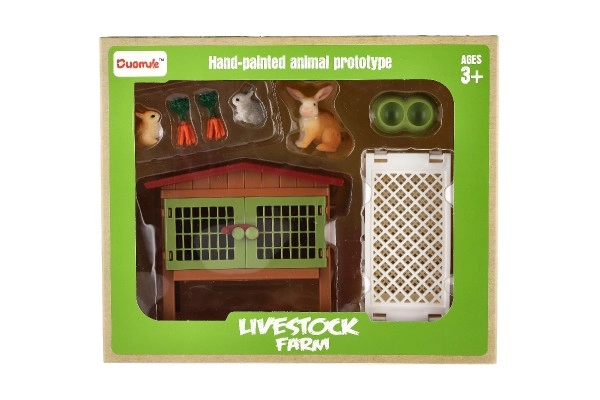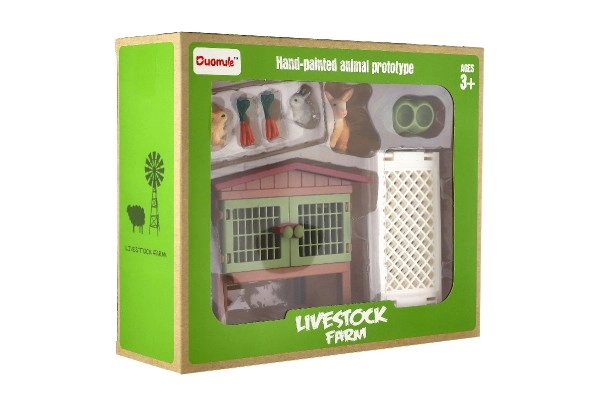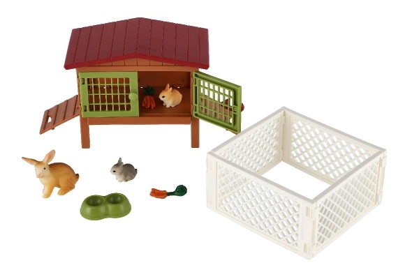 Тази клетка за зайци с функционални врати и ограден двор предлага реалистична игра със зайчета.