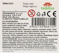 Комплектът включва цялото необходимо оборудване за малки нинджи, включително шурикени и други аксесоари, за да може всеки да стане майстор на боя.