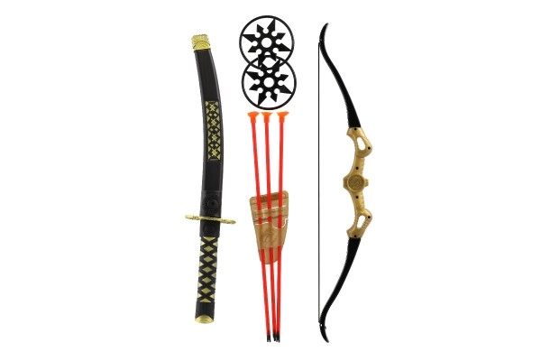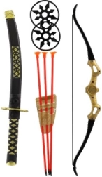 Този нинджа комплект е идеален за всички малки приключенци, които искат да се превърнат в истински нинджа воини. Комплектът съдържа всичко необходимо за реалистична и безопасна игра, включително меч с детайли, лък със стрели с вендузи и допълнителни аксесоари.