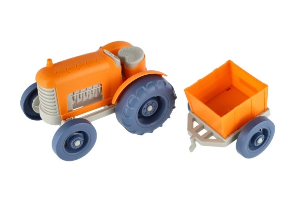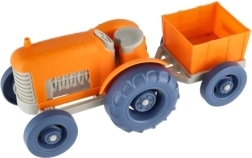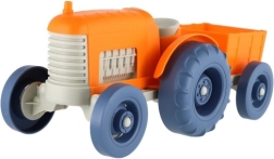 Този цветен трактор с ремарке е перфектен за деца, които обичат да играят на фермери. Устойчивият пластмасов материал гарантира дълъг живот, независимо къде си играят децата.