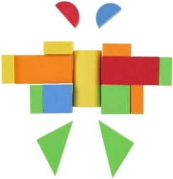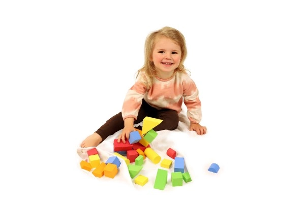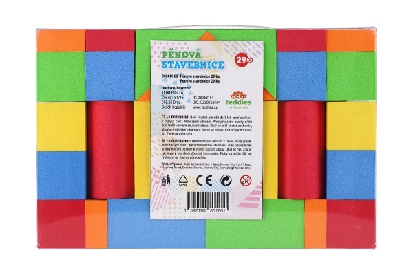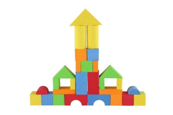 Този строителен комплект от пяна съдържа 29 части, които насърчават креативната игра и развитието на пространственото въображение. Кубчетата са леки и лесни за управление, идеални за малки ръчички.