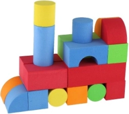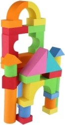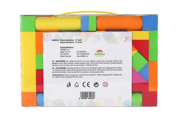 Този цветен пяно строителен комплект е идеален за деца, които обичат да строят и да творят. Комплектът съдържа 81 кубчета с различни форми и цветове, които помагат за развитие на детското въображение и фината моторика. Изработен от мек и безопасен материал, комплектът е подходящ за най-малките ръчички и насърчава креативната игра.