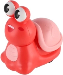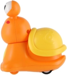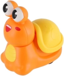 Достатъчно е да натиснете черупката и охлювът потегля. Тази проста интеракция подпомага развитието на грубата моторика при децата.