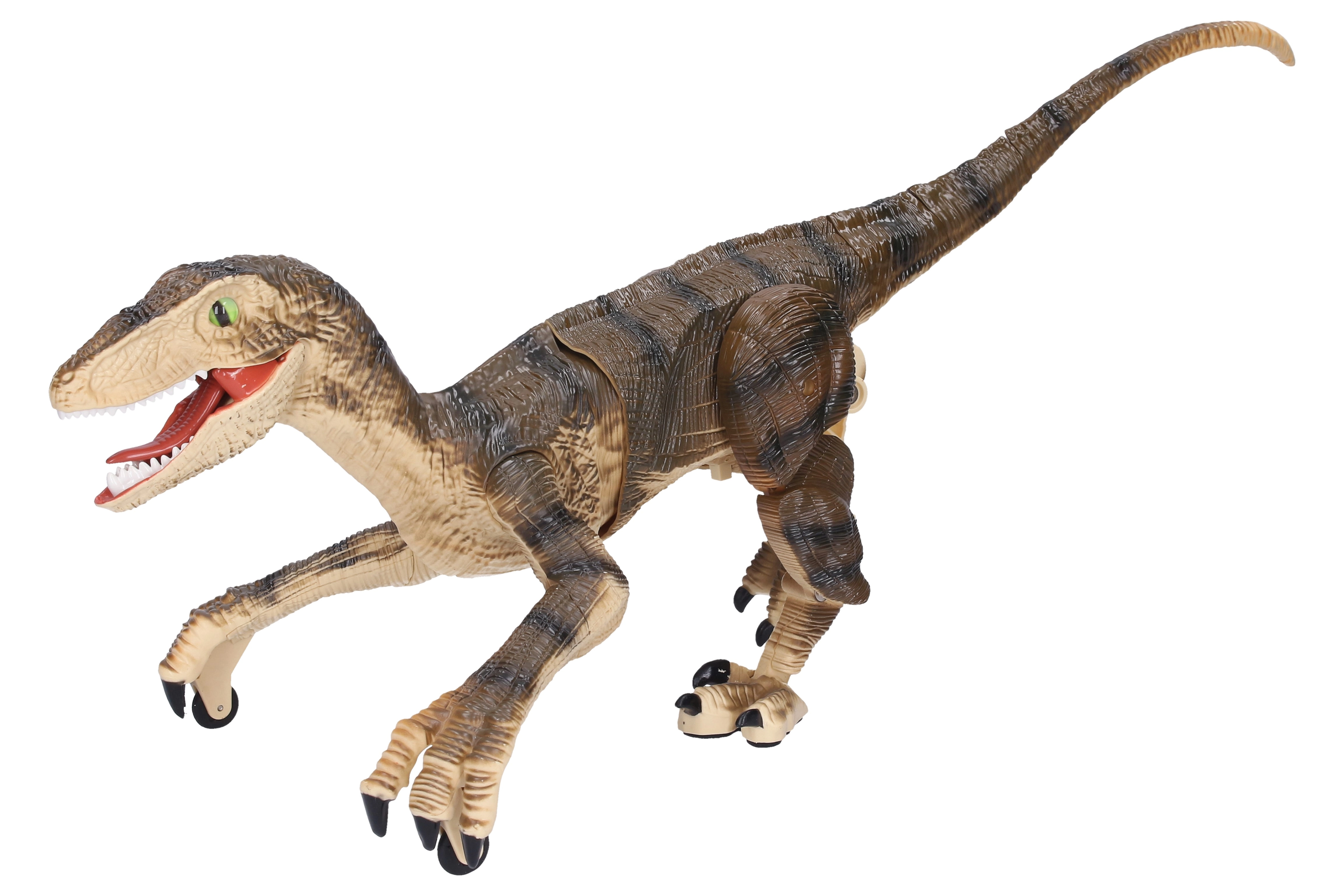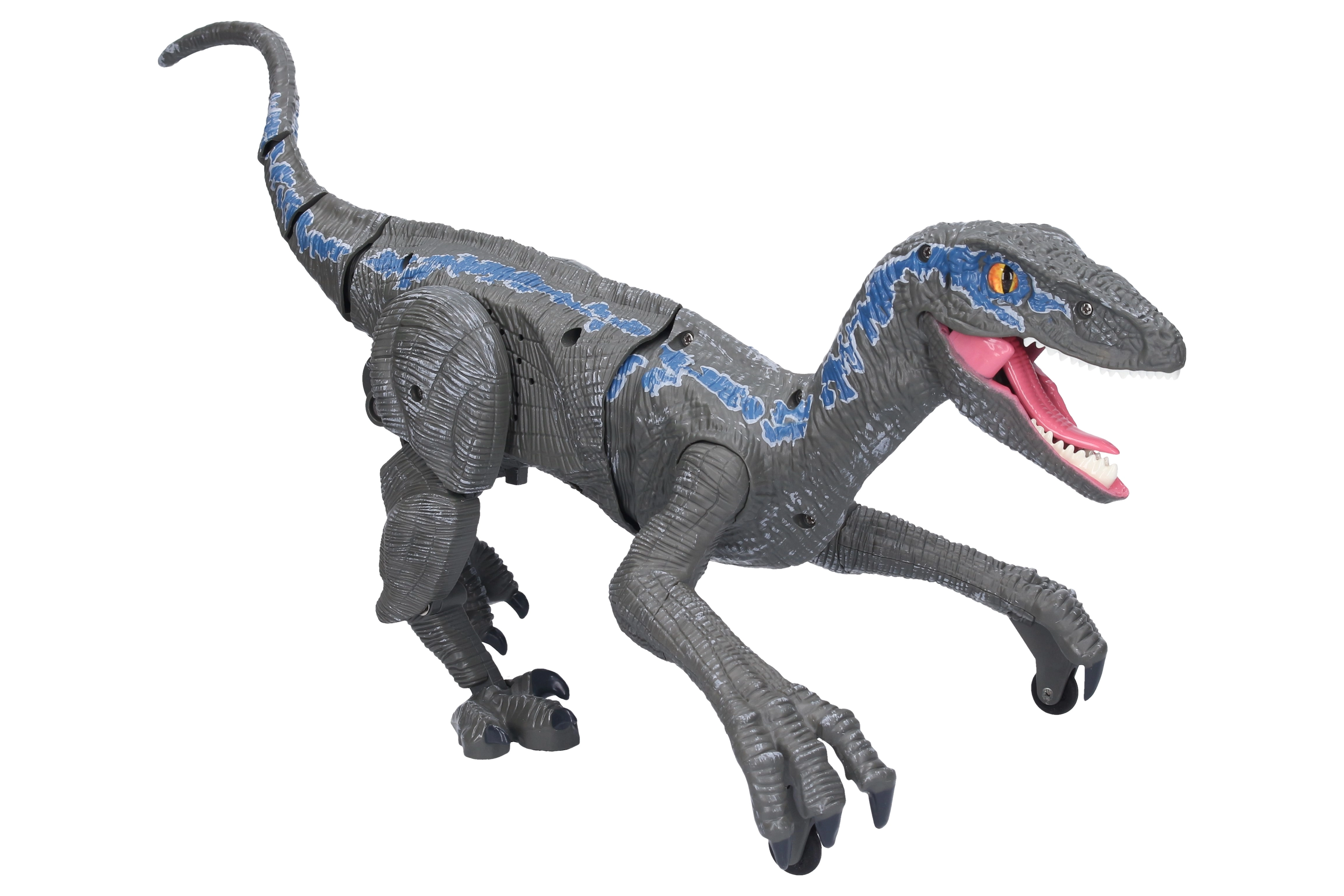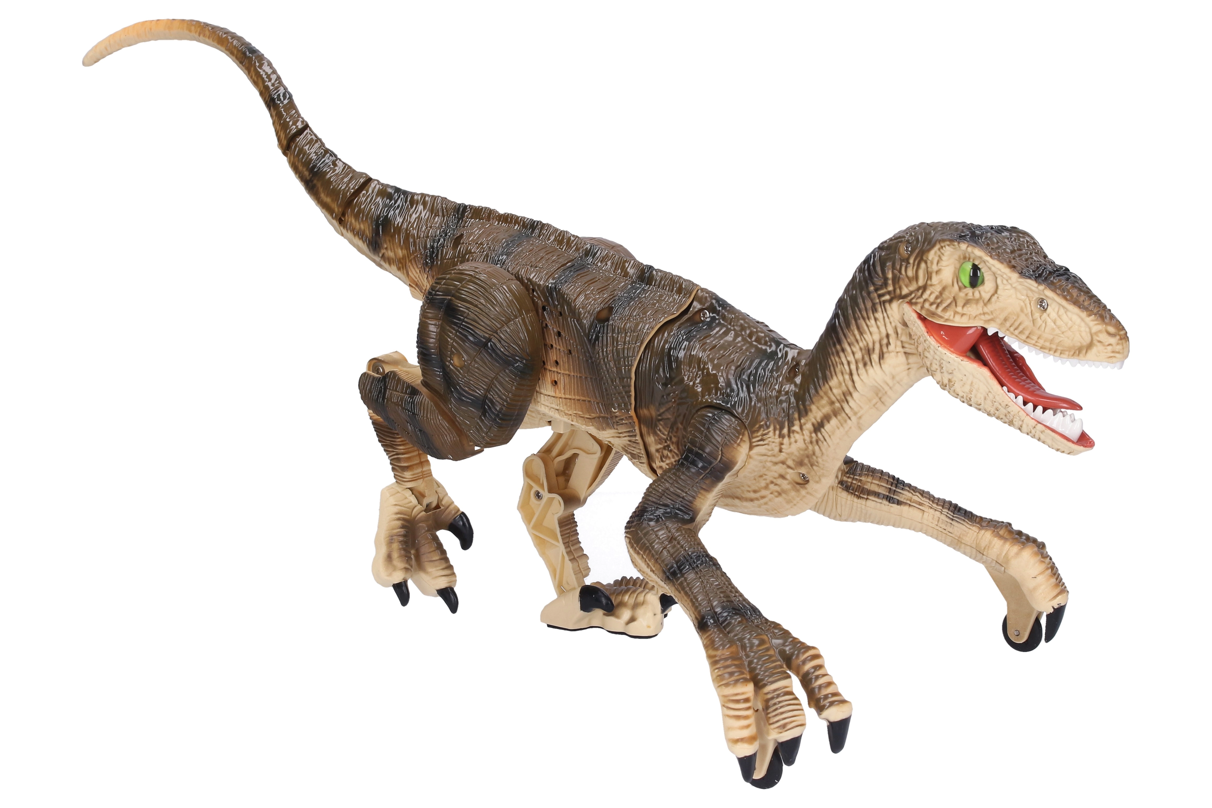 Управлявай праисторическия хищник и се наслади на екшън забавление с реалистичен раптор с дистанционно управление. Благодарение на плавните, реалистични движения, светещата паст и динозавърския рев играта ще бъде изпълнена с напрежение и атмосфера от древни времена. Идеален за малки почитатели на динозаврите и любители на интерактивните играчки.
