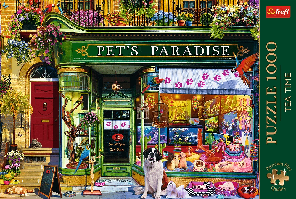 Пъзелът Trefl Premium Plus Tea Time: Рай на животните е част от ексклузивна серия, която съчетава художествена красота с прецизна изработка. С 1000 части ще създадете изображение с размери 68,3 x 48 cm, което впечатлява с пъстрота и емоционален заряд.