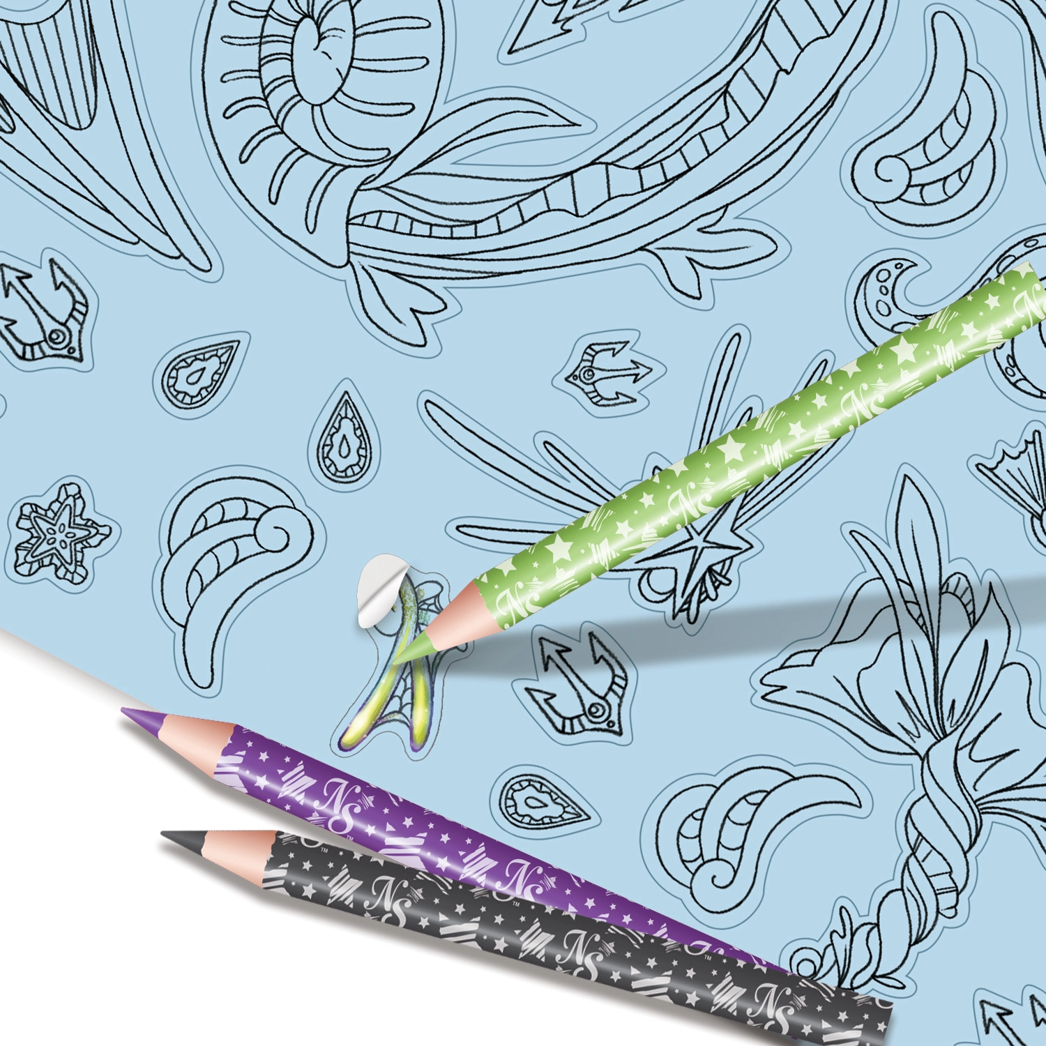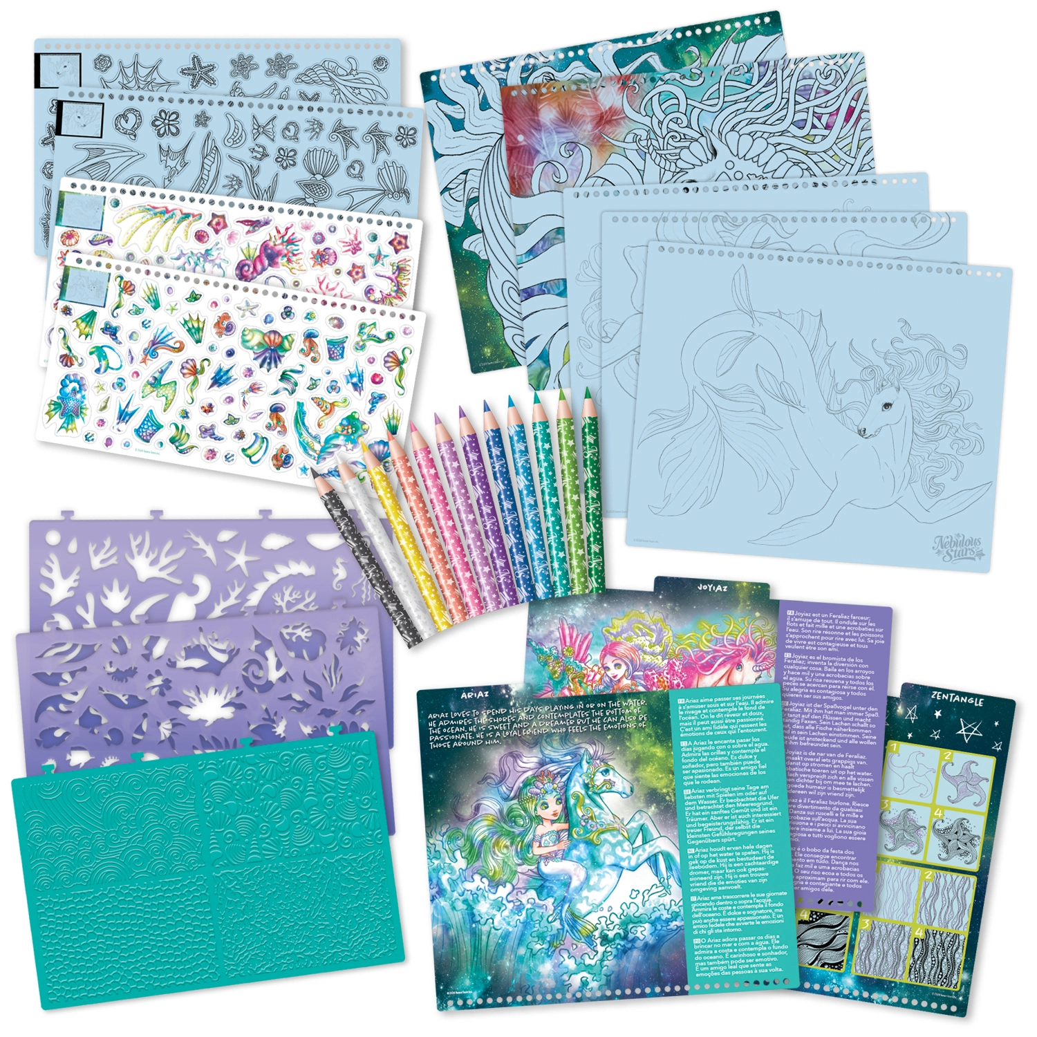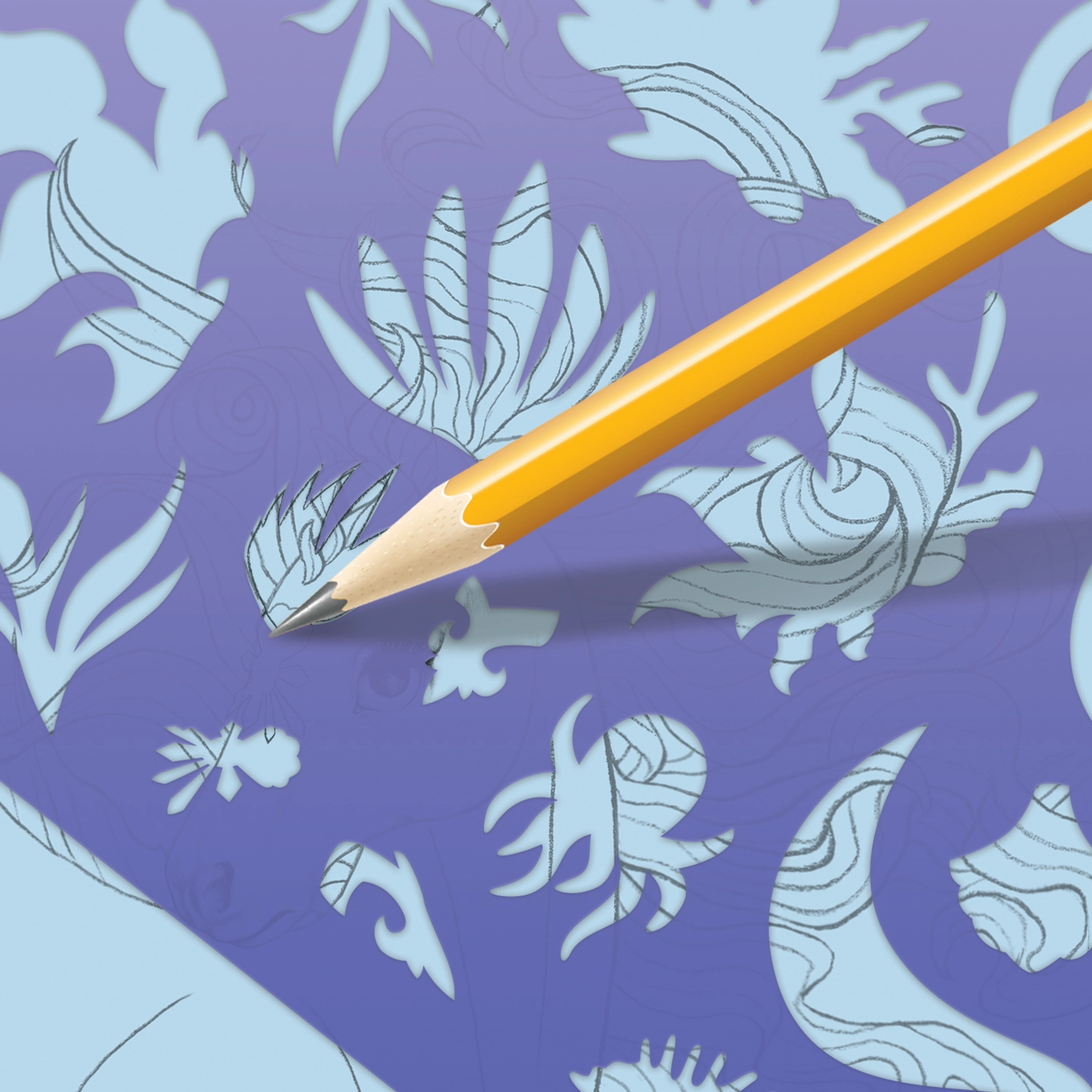 • 12 цветни молива и 80 шаблона за безкрайни вариации