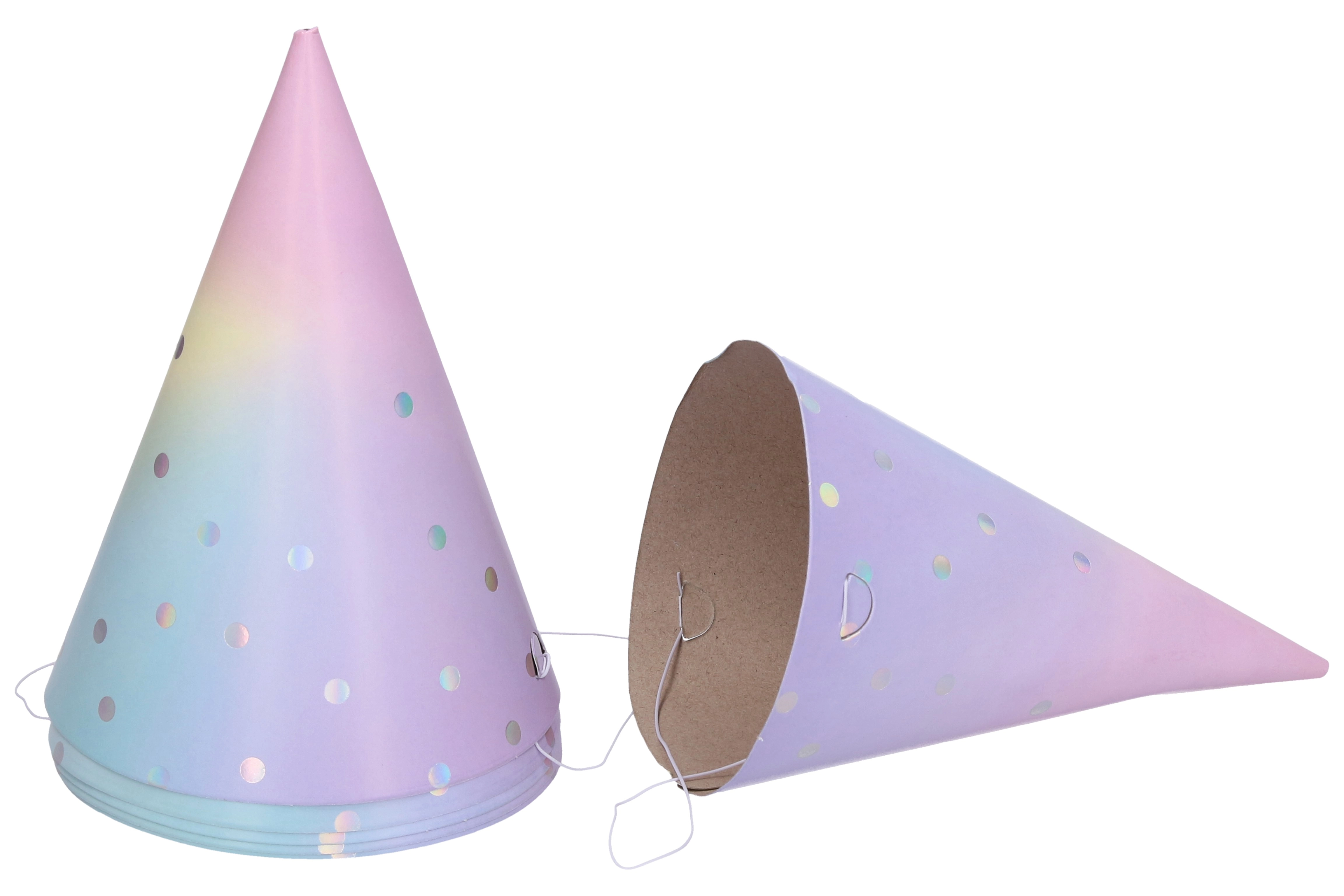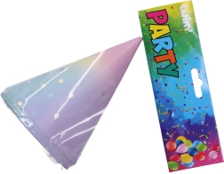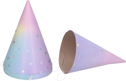 Нашите пастелни парти шапки ще внесат радост и игриво настроение на вашето тържество. Всяка опаковка съдържа шест броя с размер 15 cm, което е идеалният размер както за деца, така и за възрастни. Шапките са изработени от качествена хартия, която е лека и удобна за носене. Благодарение на пастелното им изпълнение са подходящи за различни тематични партита и им придават уникална атмосфера.