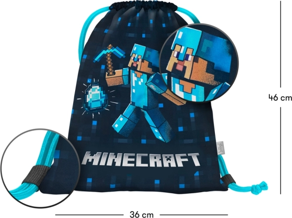 Стилната торбичка MINECRAFT Blue Axe е идеална за училище, занимални и свободно време. Благодарение на издръжливия и миещ се материал издържа на ежедневна употреба и се поддържа лесно чиста. Здравите стягащи връзки служат и като раменни презрамки, така че можете удобно да носите торбичката на гръб.