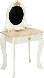 Подарете на малката кокетка нейния собствен кът за красота. Дървената тоалетка LULILO Bella има голямо овално огледало, практично чекмедже и странични рафтчета за дребни вещи. Здравата дървена конструкция с гладка повърхност е лакирана с нетоксични бои, което я прави идеална за ежедневна игра и като декорация на детската стая.