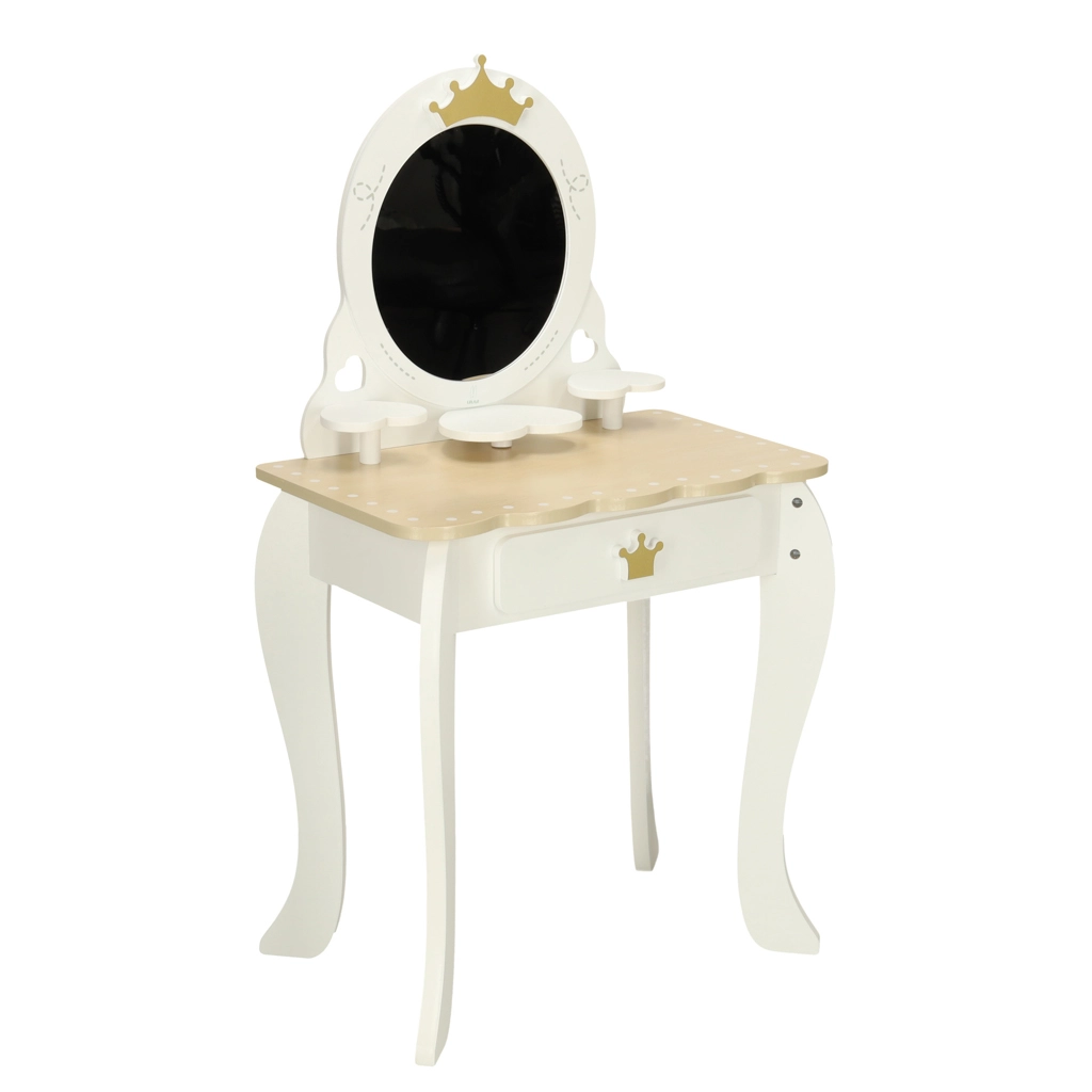 Овалното огледало, чекмеджето и страничните рафтчета държат всички „съкровища“ под ръка. Детето има всичко подредено и може напълно да се съсредоточи върху играта.