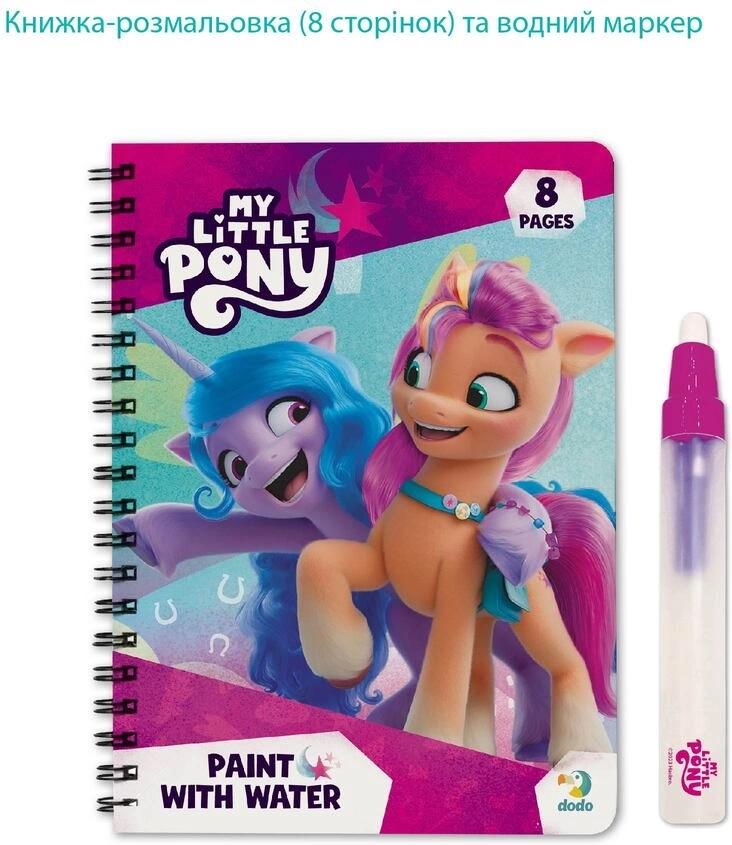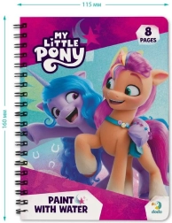 Открийте вълшебно рисуване без безпорядък! Този спирален блок с мотиви My Little Pony носи на децата безкрайно забавление – нужно е само да напълните писалката с вода и картинките мигновено оживяват в цветове. След изсъхване цветовете изчезват и можете да рисувате отново и отново. Идеален за път и у дома и чудесен за фина моторика.