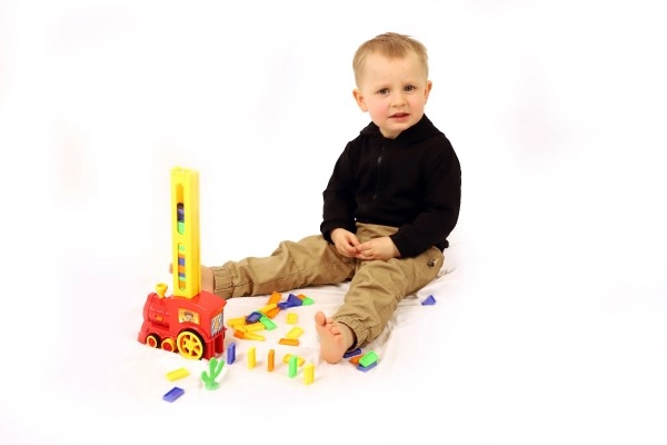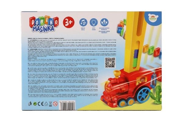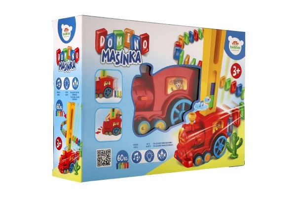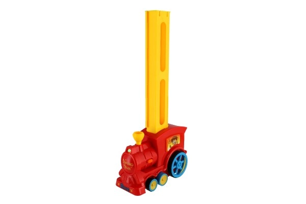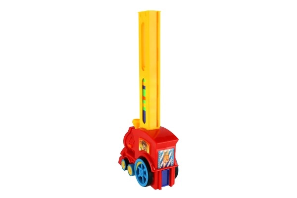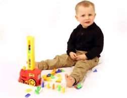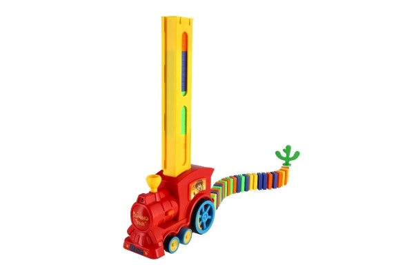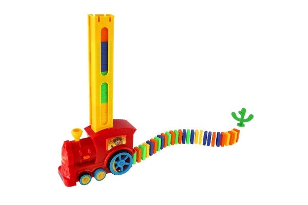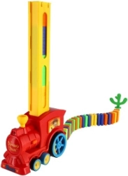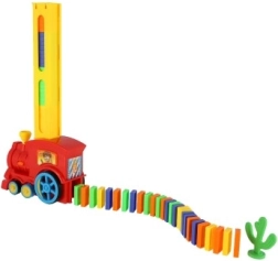Забавен домино влак, който по време на движение сам подрежда до 60 цветни плочки в подредена редица. Предлага автоматична смяна на посоката при удар, лесно управление на посоката чрез завъртане на комина и ефектни светлинни и звукови ефекти. Страхотно средство за развитие на фината моторика, търпението и креативността на децата.