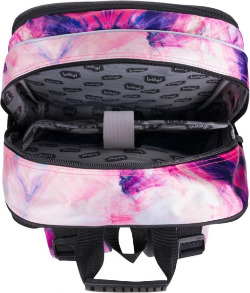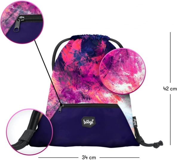 Стилен училищен комплект за момичета BAAGL Abstract включва просторна трисекционна раница, практичен чувал за гръб и здрав несесер. Предлага ергономичен гръб, богата организация, светлоотразителни елементи и издръжливи материали в модерен лилаво-розов дизайн с детайли. Идеален от 3. клас на ОУ.