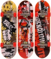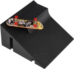 Пръстовият скейтборд с рампа предлага реалистично изживяване от фингербординг в компактен вариант. Благодарение на здравата пластмасова рампа и персонализируемия фингерборд можете да тренирате оли, дроп-ин и други трикове по всяко време и навсякъде. Миксът от графични дизайни ще зарадва всеки малък и голям ентусиаст.