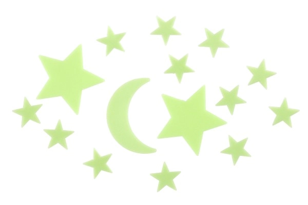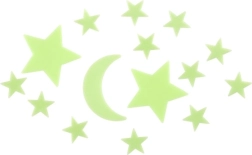 Превърнете детската стая в вълшебна вселена. Комплектът светещи звезди и луна се „зарежда“ през деня от светлина и след изгасване създава приятна приглушена светлина, която помага на децата да заспят спокойно.