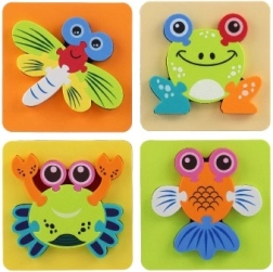 Този комплект 3D пяни пъзели предоставя на децата безкрайни възможности за забавление и учене. Благодарение на четирите различни вида животни, като драконче, жабка, рак и рибка, можете да изберете според собствените предпочитания или възможности.
