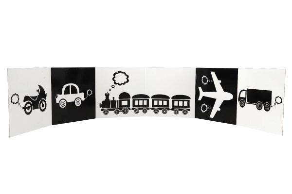 Тази практична акордеонна форма позволява книгата лесно да се разгъне и постави пред бебето, без да е нужно то да прелиства със собствените си ръце.