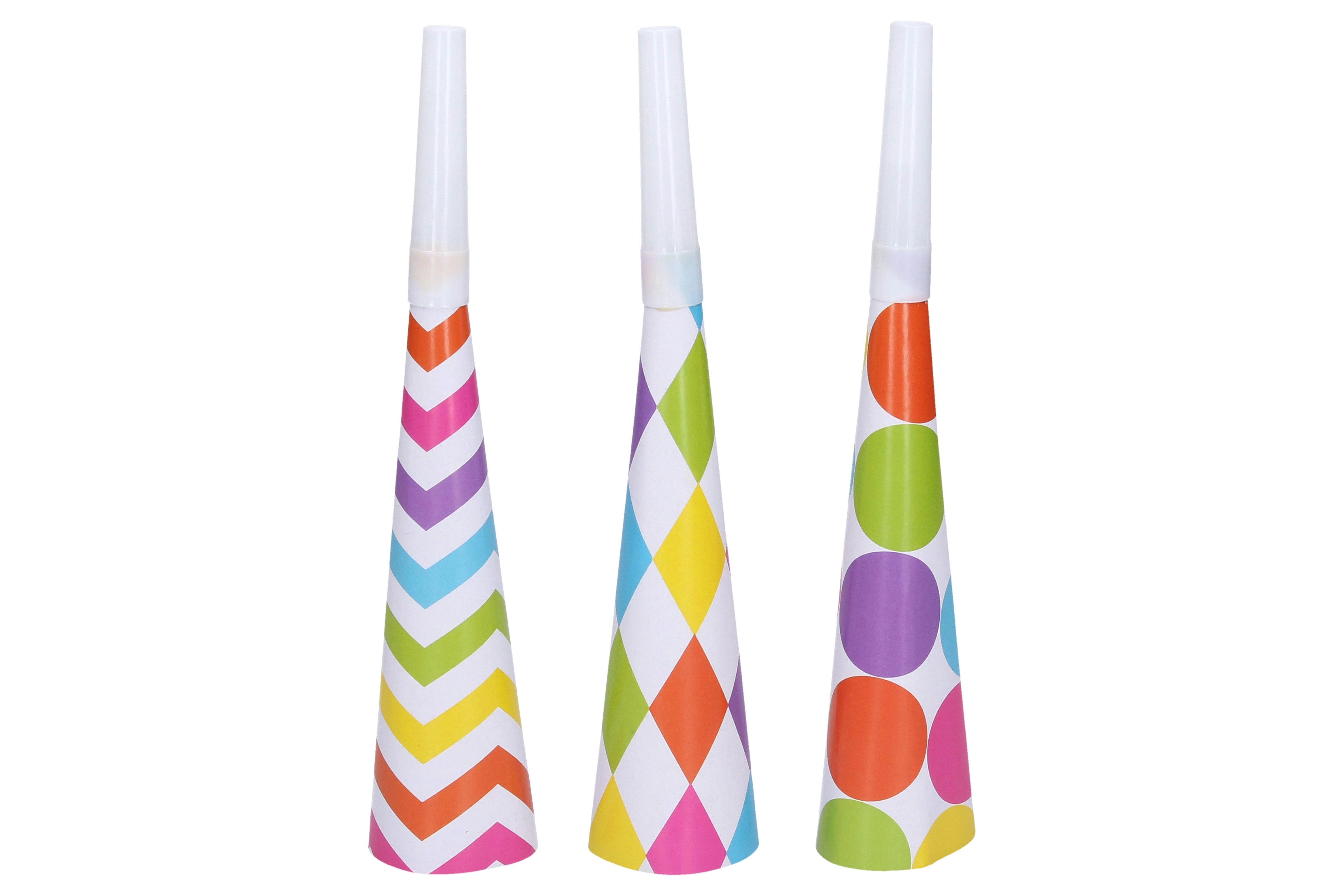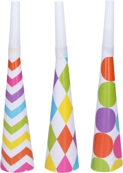 Добавете повече забавление към вашето парти с тези парти тромпетки MIX, които са с дължина 20 см и се предлагат в опаковка от 6 броя.