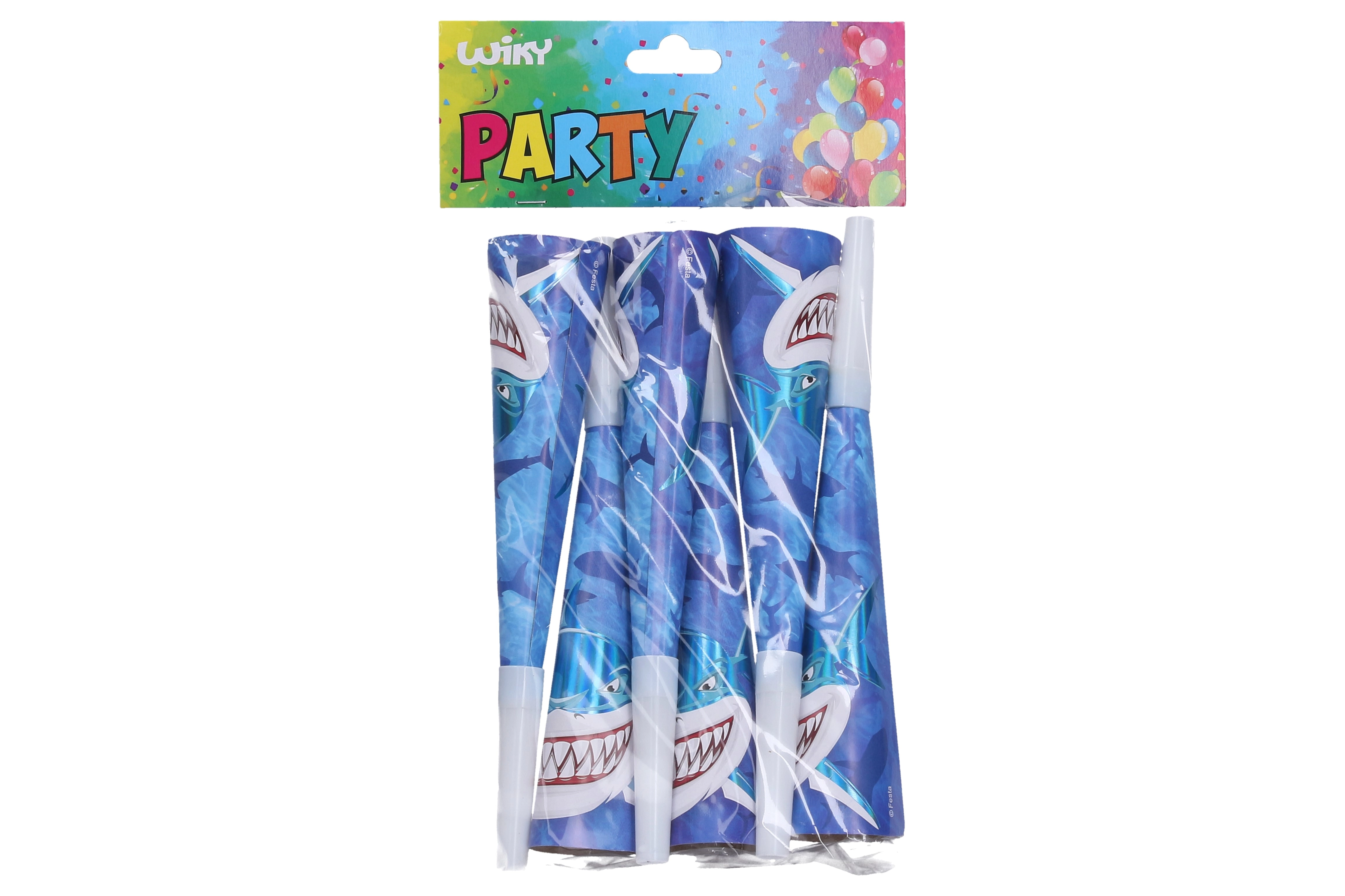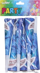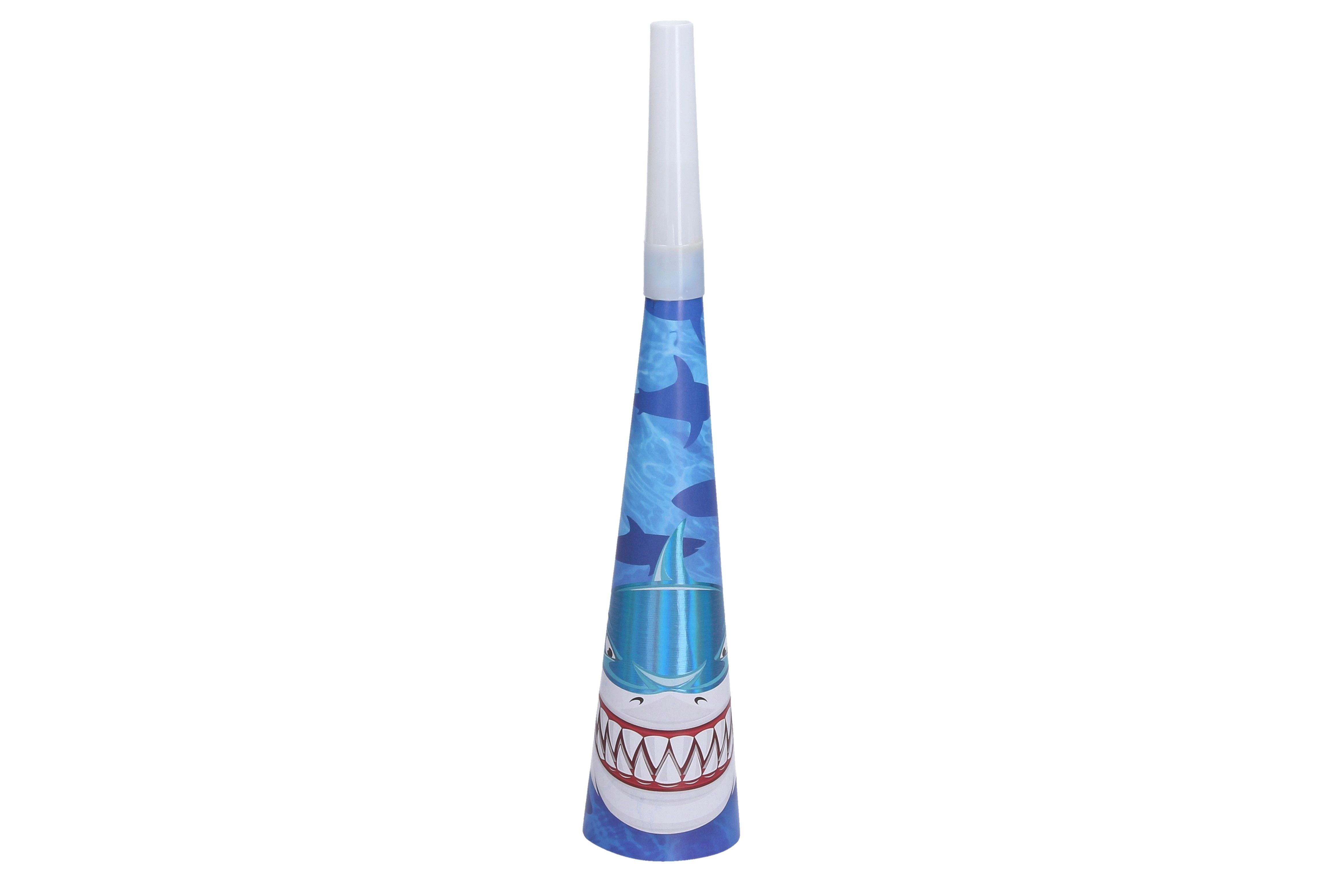 Добавете правилното настроение към всеки празник с парти тромпетки с мотив акула. Благодарение на дължината 20 см са удобни за хващане дори от по-малки деца и са лесни за използване – достатъчно е да духнете и забавата започва.