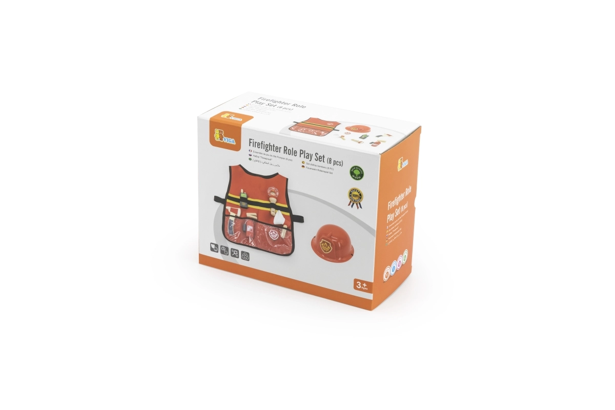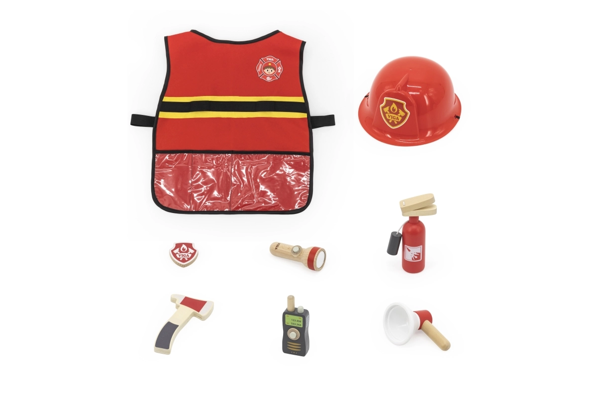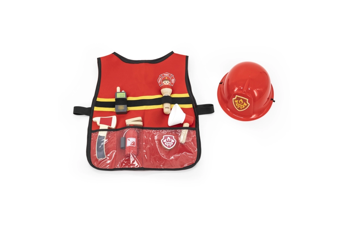 Идеален за ролева игра, запознаване с пожарната безопасност и развитие на моторните умения при закопчаване на елека, поставяне на каската или работа с инструментите. Чудесен за ежедневна игра и като костюм за празненства.