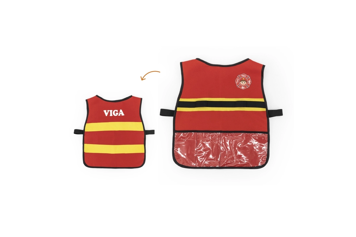 Лекият пожарникарски елек с два отделни джоба и голям преден отсек държи всички аксесоари на сигурно място. Лесно се облича и пасва на деца от 3 години.