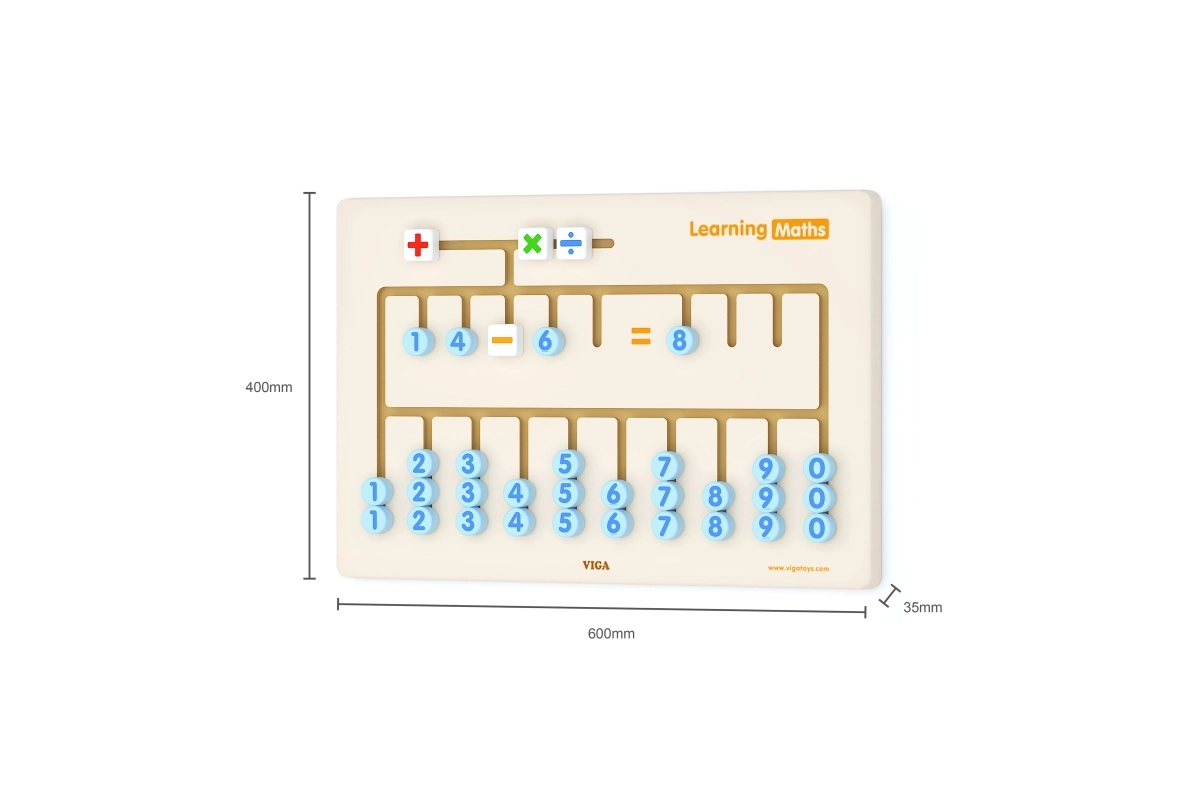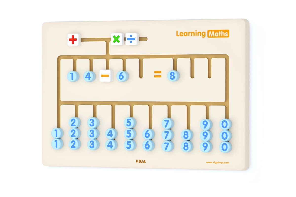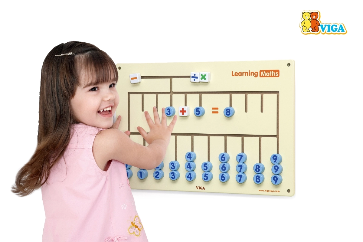 Дървената сметна табла VIGA предлага на децата забавно и визуално ясно запознаване с числата и лесните задачи. Интерактивният принцип на преместване на цифри и знаци укрепва концентрацията, координацията око–ръка и естественото любопитство към откриването на математиката.