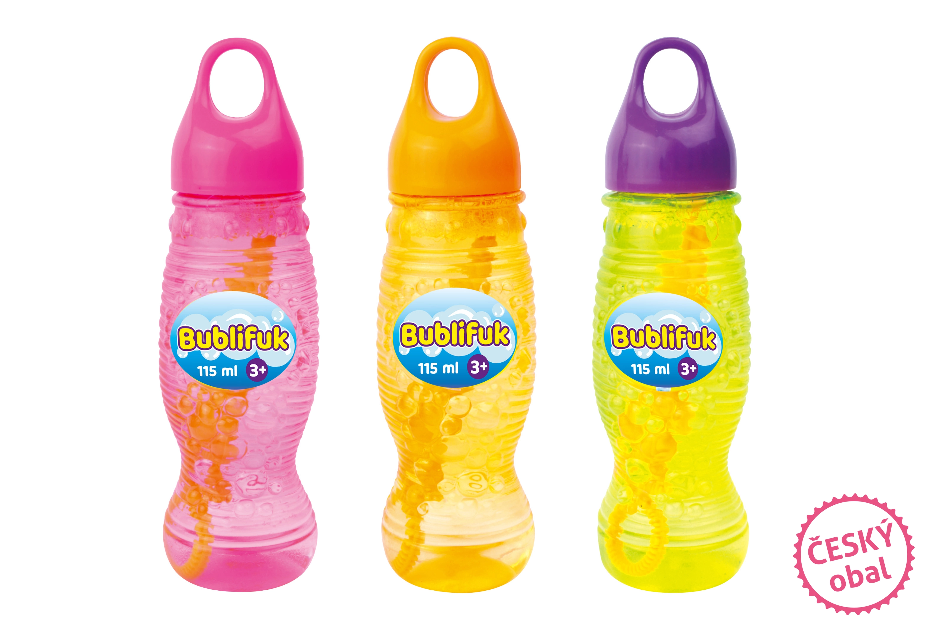 Сапунените балончета се предлагат в три весели цветови варианта: розов, оранжев и жълт. Това позволява на децата да изберат любимия си цвят и да се забавляват със създаването на балони в предпочитаните от тях цветове.