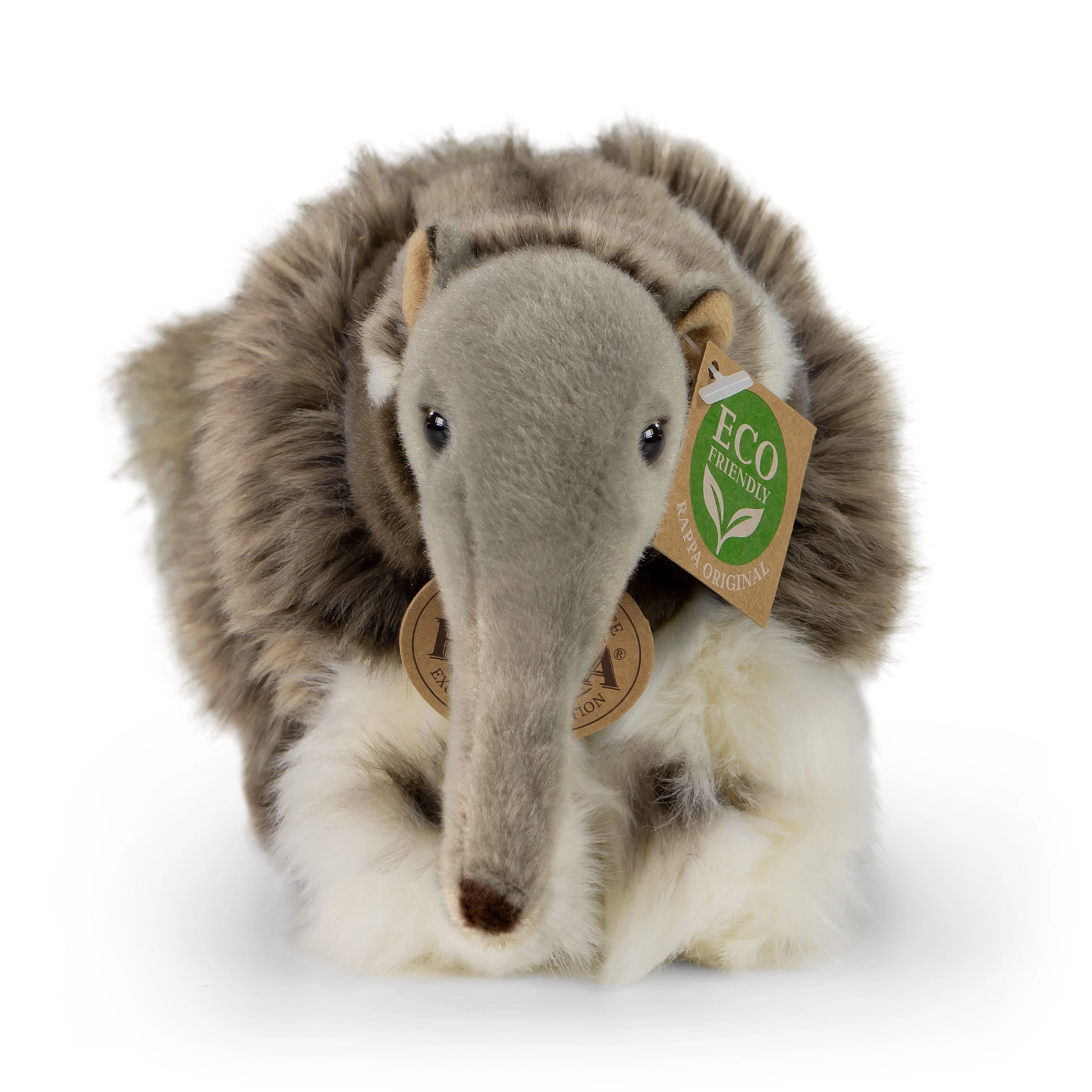 Потопете се в света на мекотата с нашия плюшен мравояд от колекцията RAPPA. Неговото ексклузивно качество ще ви впечатли, а екологичният пълнеж ще зарадва всеки, който търси щадящи природата продукти.
