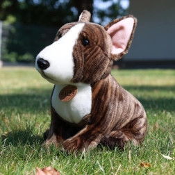 Вярната детайлност на бултериера в комбинация с нежния, приятен на допир плюш правят играчката идеалния другар за гушкане.