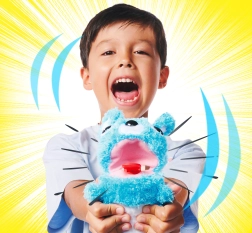 Нежен натиск предизвиква сладък звук, по-силен натиск пуска писък, а при разклащане мечето започва разтресено да врещи – забавление, което не омръзва.
