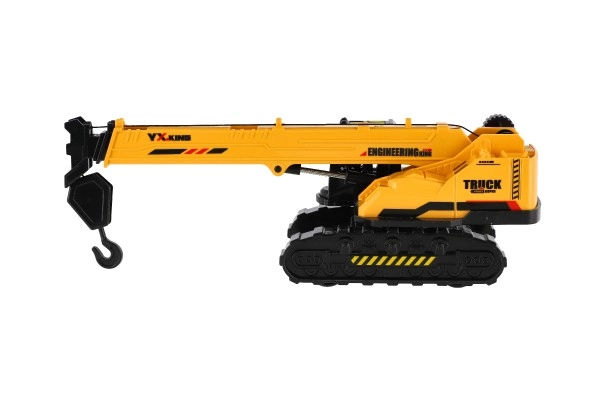 Комбинацията от пластмаса и метал увеличава дълготрайността на играчката, а верижното шаси осигурява стабилност и реалистичен вид на строителната машина.