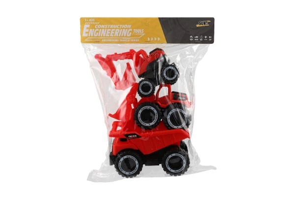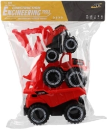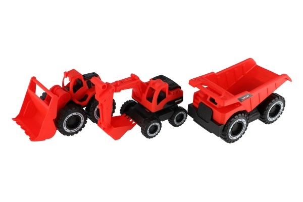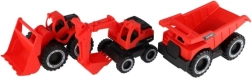 Този многофункционален комплект съдържа три устойчиви пластмасови машини – багер, товарач и самосвал – които ще донесат на децата часове творческо забавление. Благодарение на инерционния ход превозните средства тръгват лесно при леко побутване, а подвижните части (кофа, рамо, каросерия) добавят реализъм към играта.