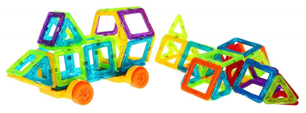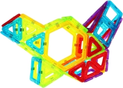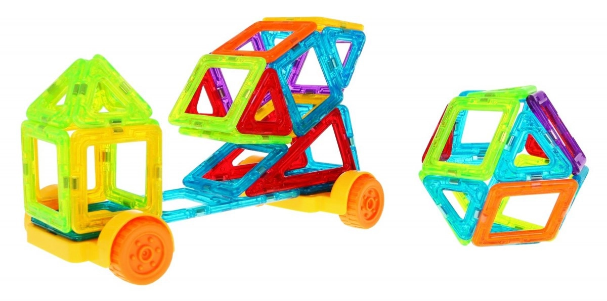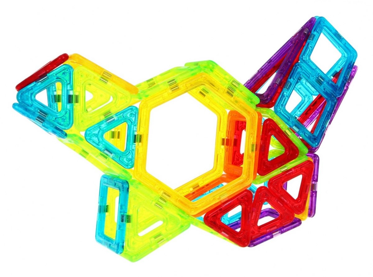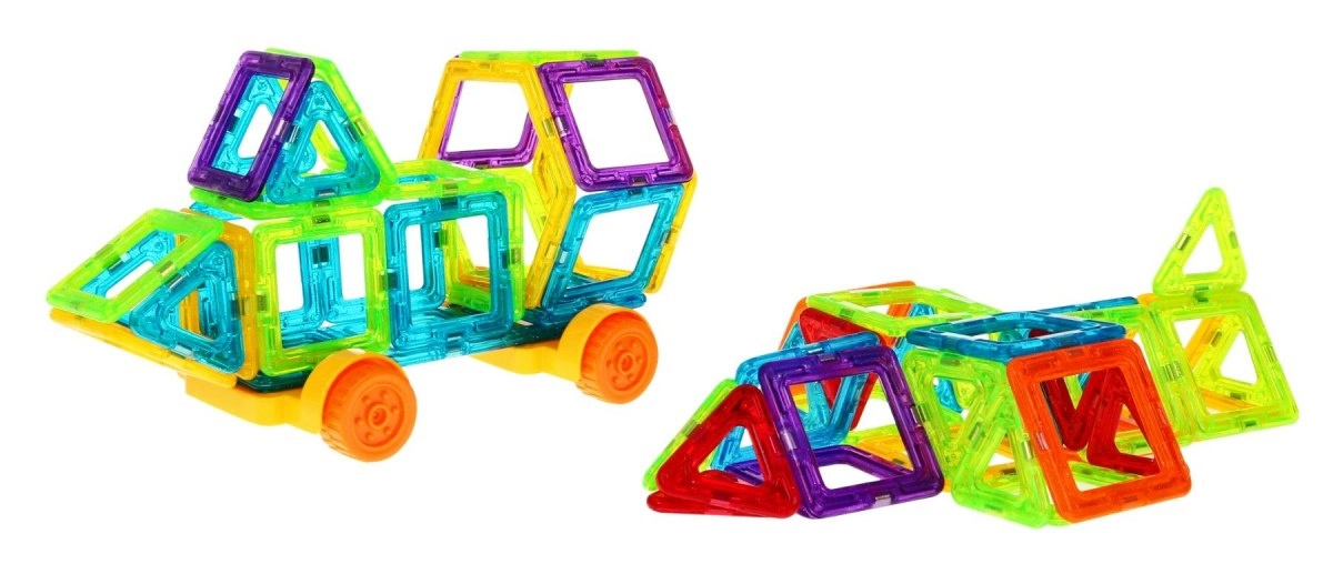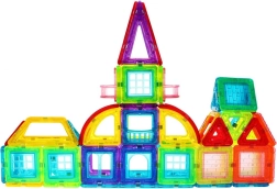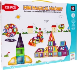 Този креативен магнитен конструктор предлага 128 висококачествени елемента в различни форми и цветове. Благодарение на безопасните магнитни връзки могат да се изграждат стабилни модели – от къщи и замъци до коли, въртележки и футуристични конструкции. Живите цветове привличат вниманието и насърчават забавното учене чрез игра.