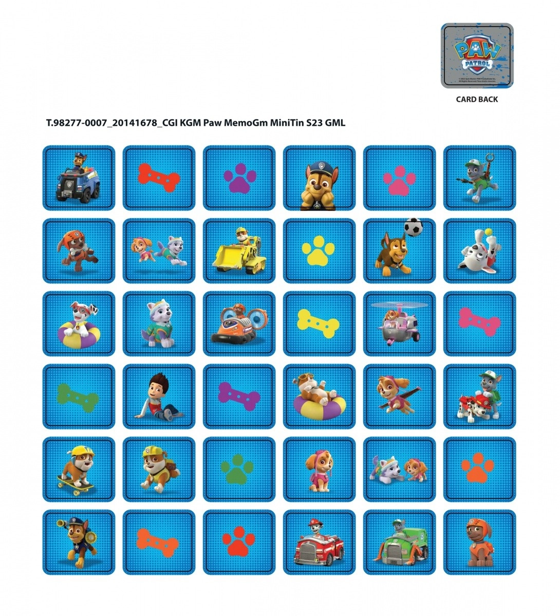 Открийте магията на мемо играта с любимите си герои като Чейс, Скай, Маршал, Ръбъл и други. Играта съдържа 72 карти, които трябва да се съчетават по двойки. Тя не само развива паметта и концентрацията, но и предлага много забавление за цялото семейство.