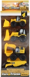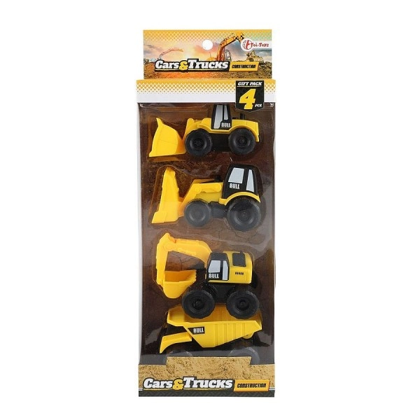 Комплектът съдържа четири различни строителни превозни средства, които подпомагат развитието на детското въображение.