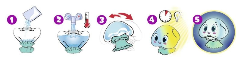 Изсипете праха, добавете хладка вода и разклатете медузата – за миг слузта е готова за игра.
