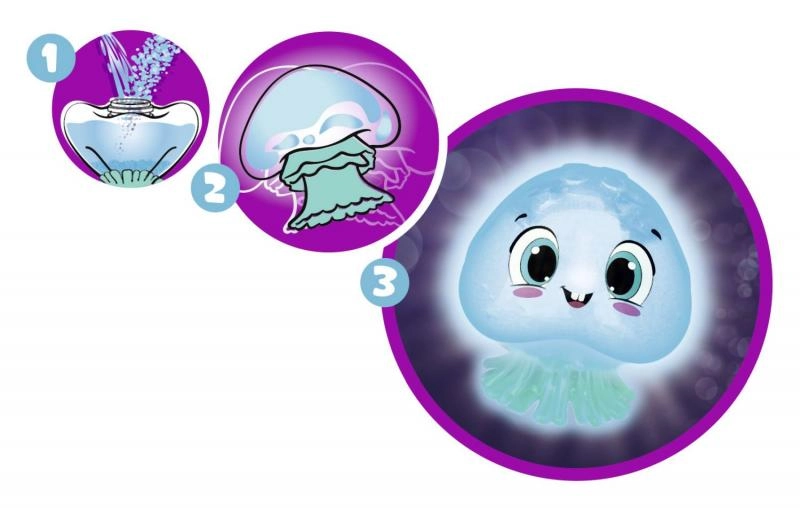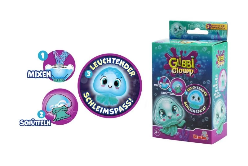 Открийте магията на светещата слуз с очарователната медуза GLIBBI. Достатъчно е да изсипете праха, да налеете хладка вода и да разклатите – за секунди се получава тюркоазена слуз, която след осветяване под лампа свети в тъмното. След игра слузта лесно се прибира обратно в медузата, така че всичко е безопасно и подредено на едно място.