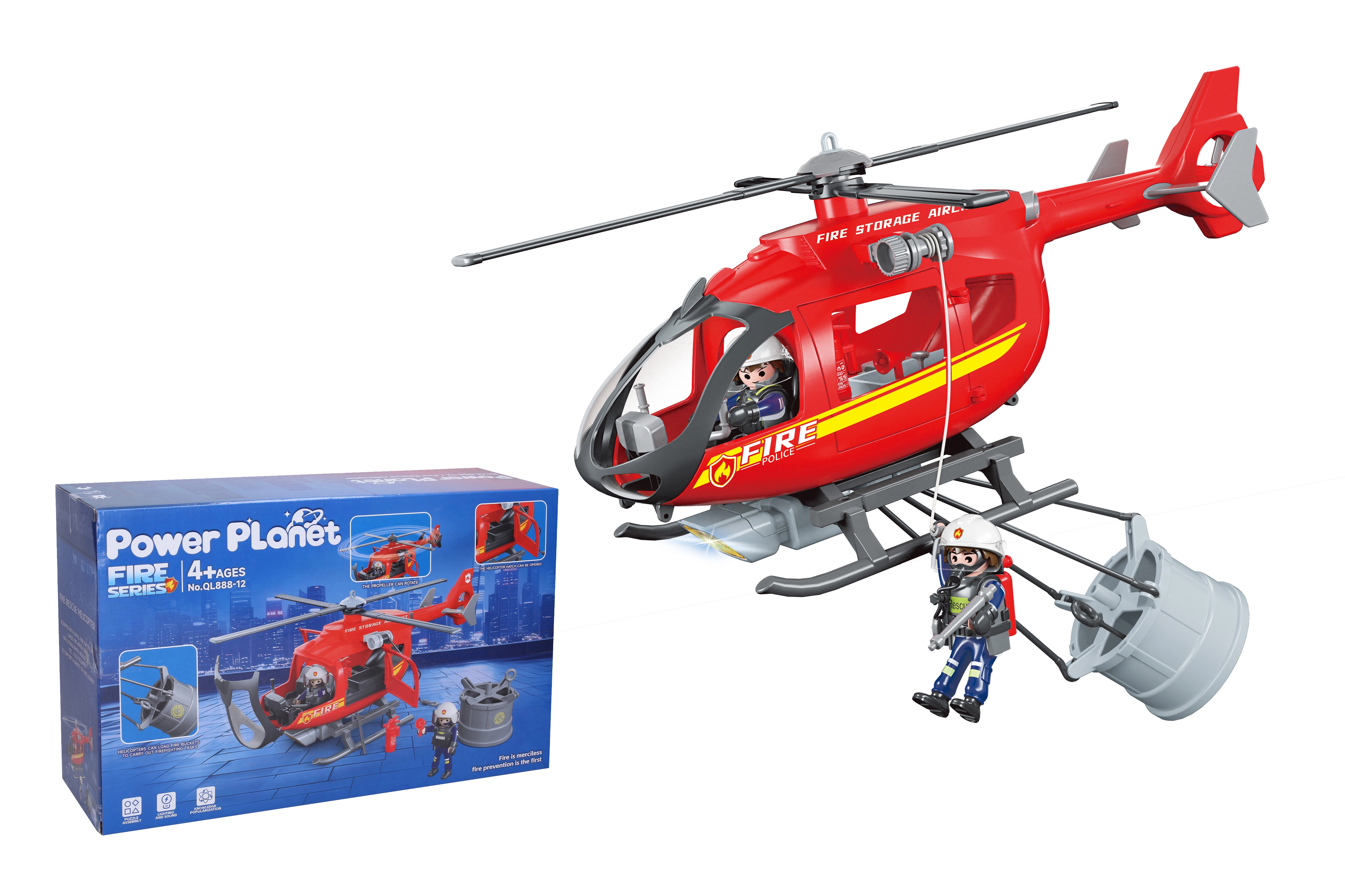 Открийте вълнуващия свят на въздушното спасяване с този детайлно изработен пожарен хеликоптер. Благодарение на отварящите се врати и кабина предлага място за две мини фигурки пожарникари, което позволява на децата да създават реалистични спасителни сценарии. Светлинните и звуковите ефекти придават на играта автентично усещане и гарантират незабравими преживявания при всяка мисия.