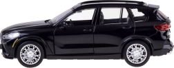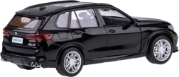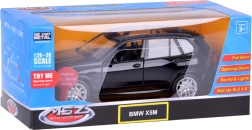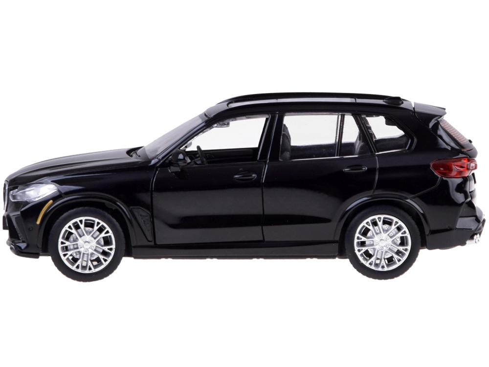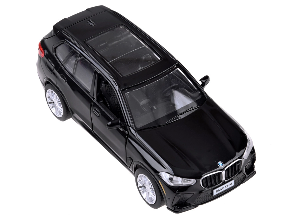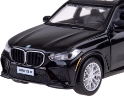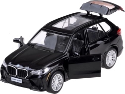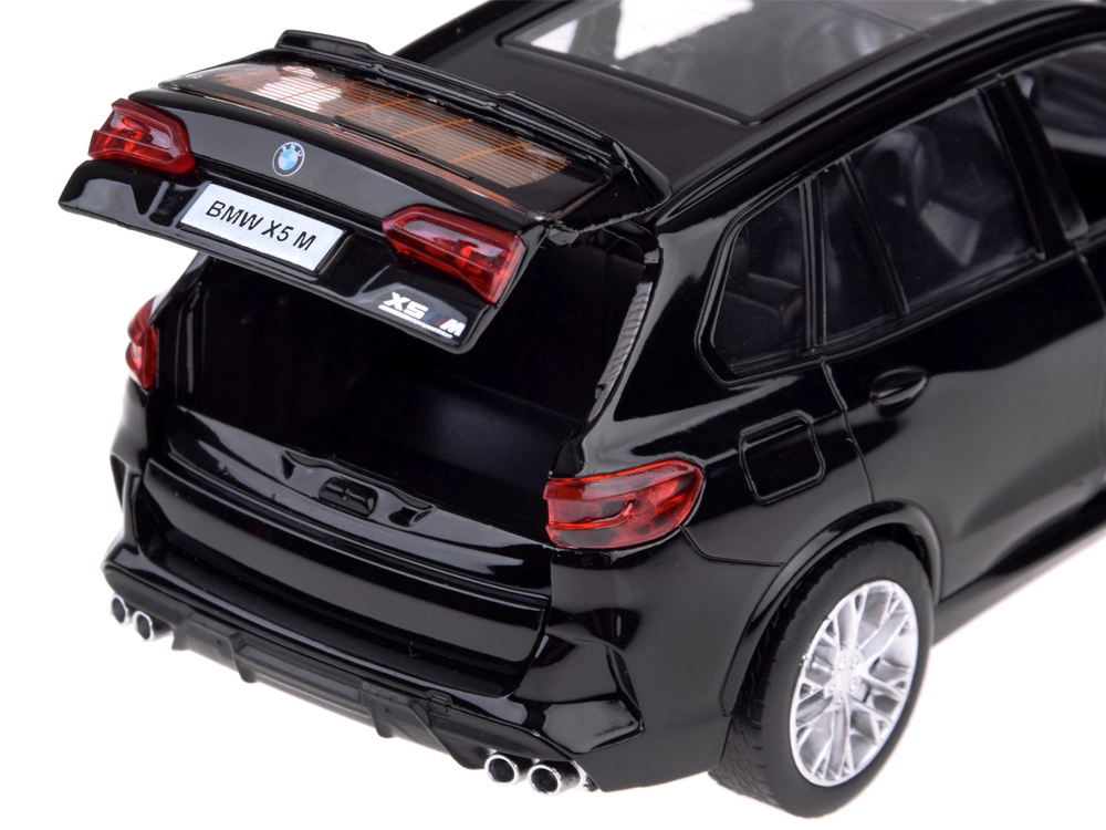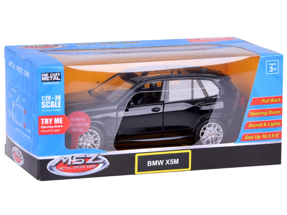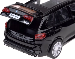 Този прецизно изработен модел на BMW X5 M в мащаб за игра и изложение съчетава здрава метална каросерия с детайлен интериор, видим и през покривния прозорец. Моделът предлага реалистични функции: при отваряне на вратите ще чуете клаксон и аларма, а при притискане към повърхността се активира звук на запалване и работа на двигателя. Ефектите се допълват от предни и задни светлини и подсветени уреди.