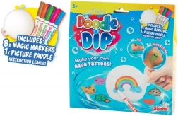 Потопете се в света на цветовете и креативността с нашия комплект Doodle o Dip, който ви позволява да създавате възхитителни водни татуировки. Този комплект съдържа осем магически флумастера в различни цветове и специална подложка за рисуване. Нарисувайте своята рисунка върху подложката, след това я поставете във вода и гледайте как изображението се отделя и става част от вашето творчество – идеално за ръката или друга част на тялото.