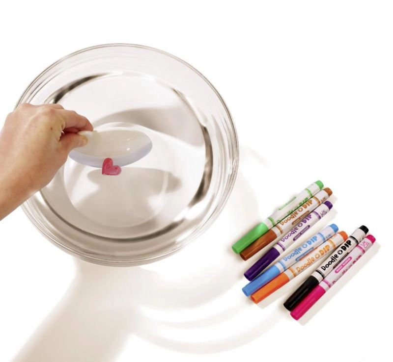Флумастерите Doodle o Dip са проектирани да оживяват творбите при контакт с вода. Достатъчно е просто да нарисувате и да потопите.