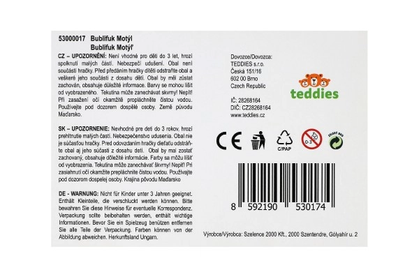 Бублифукът във форма на пеперуда е идеалната играчка, която привлича децата не само с дъговата си красота, но и с лесната употреба. В горната част има и забавен лабиринт с топче, който подпомага развитието на фината моторика на децата.