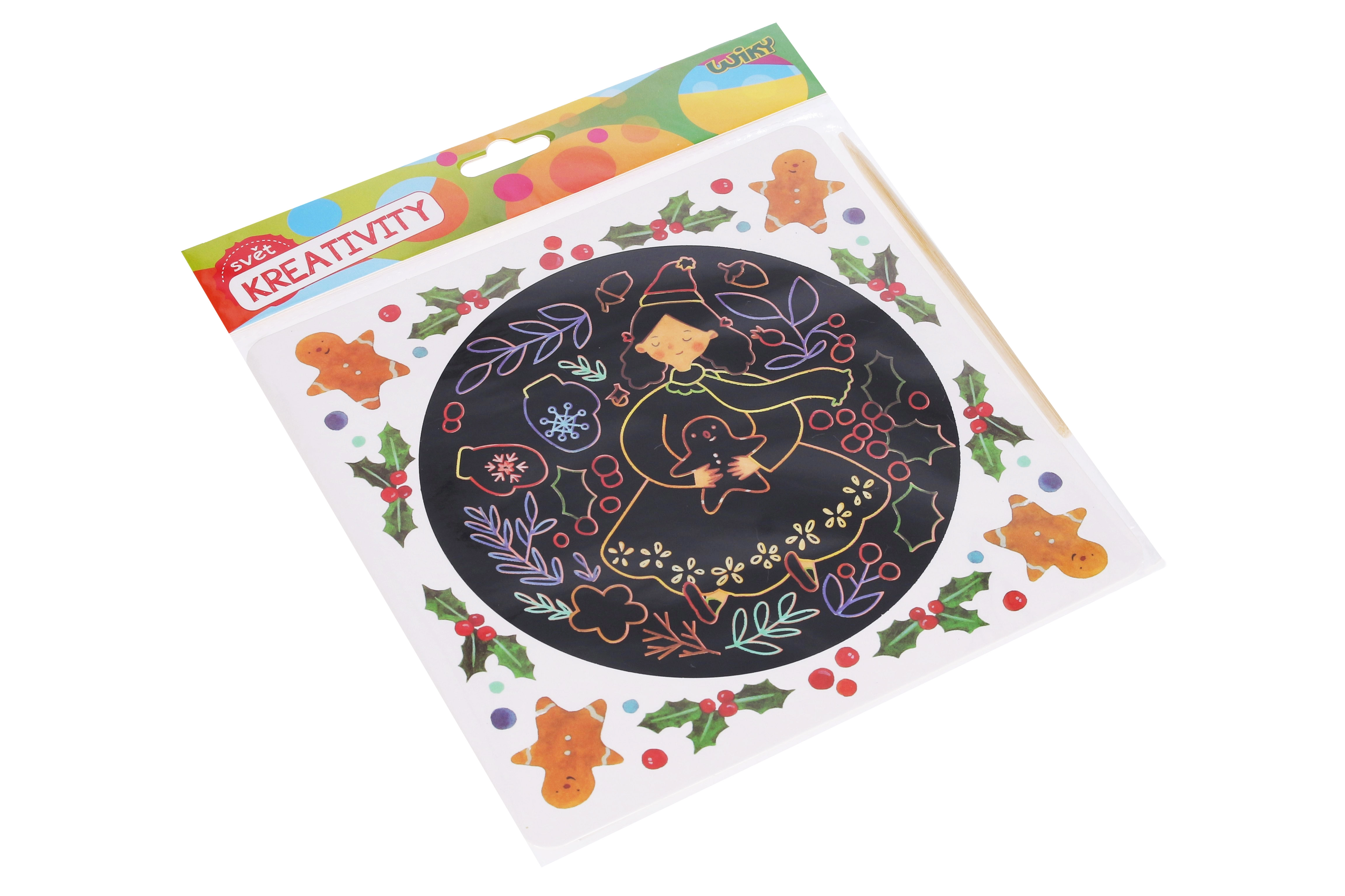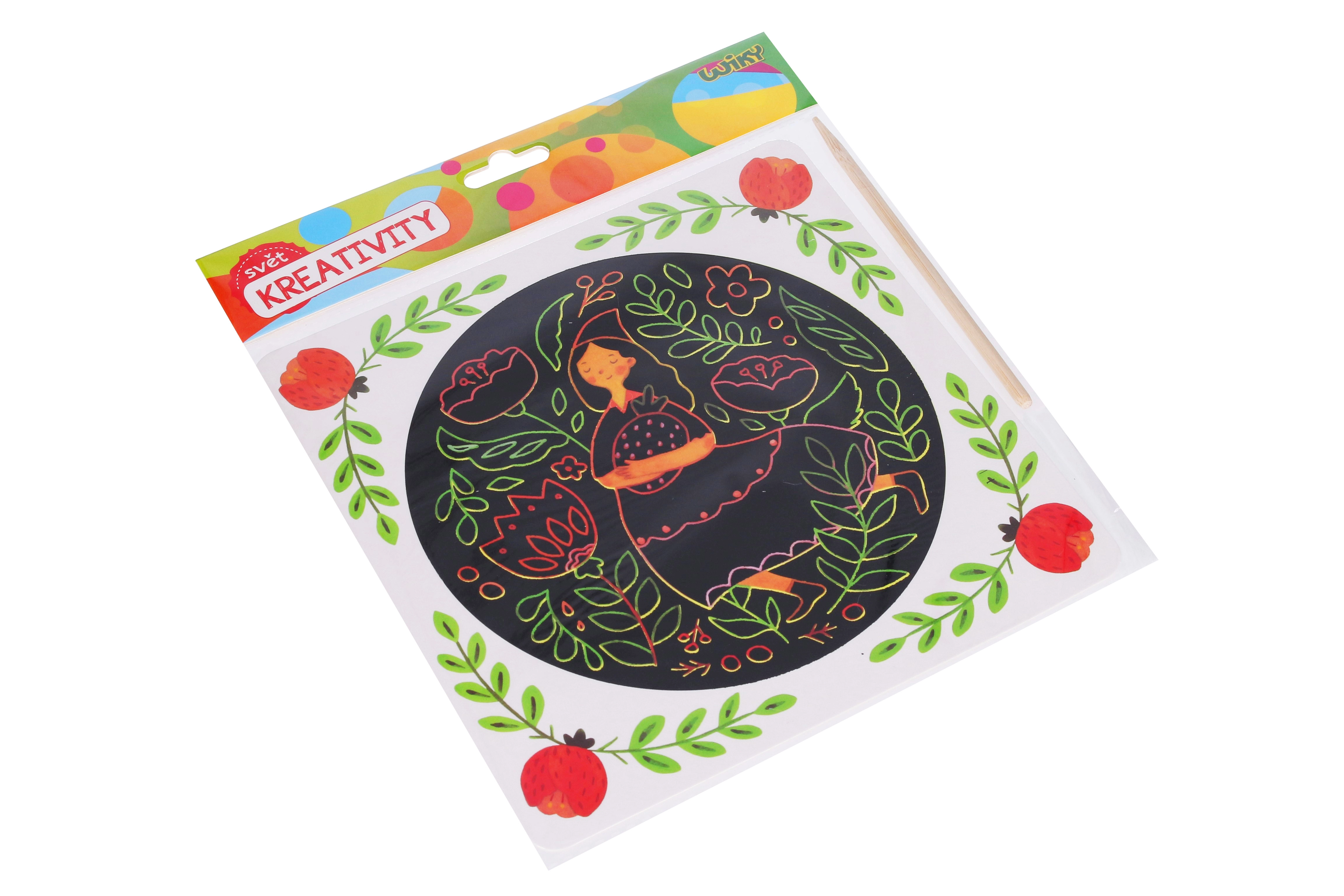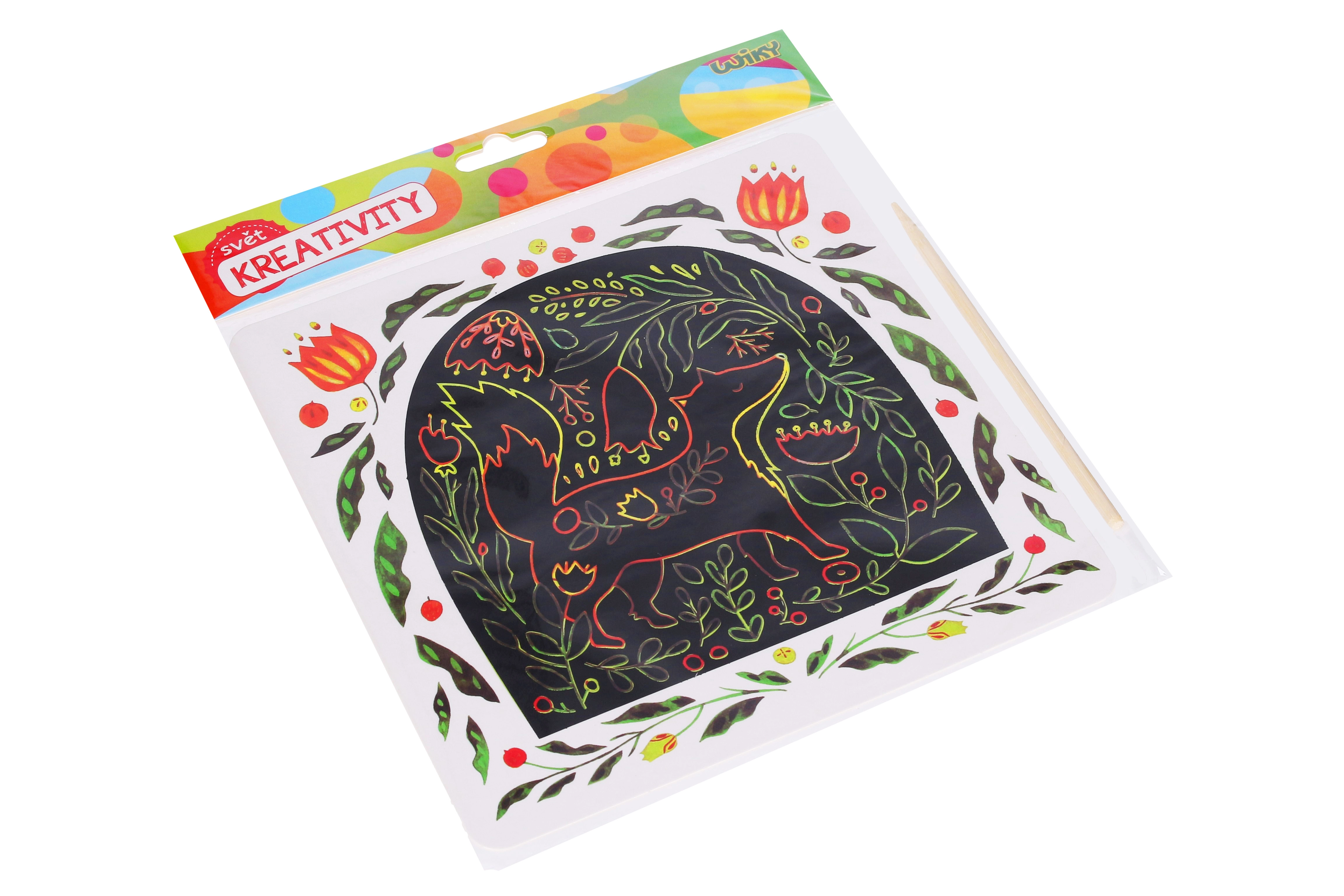 Открийте своята креативност с нашата скрапкартина с размери 20x20 см. В комплекта ще намерите стъргалка и картинка, която можете да украсите според въображението си.