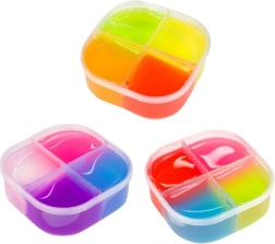 Дъговата слуз е идеална за всички, които искат да изживеят нещо необичайно и забавно. Материалът в прозрачните кутийки е разделен на четири цвята, което позволява уникални комбинации и цветни експерименти.