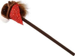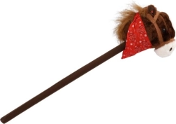 С кафява плюшена глава и отличителен червен шал носи каубойско усещане, докато здравата дървена пръчка осигурява стабилност и безопасност. Идеален за използване както на закрито, така и на открито.